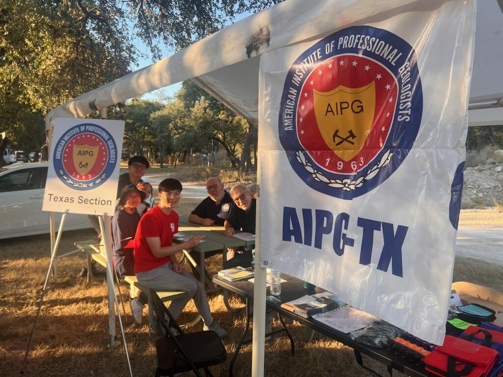The Texas Chapter of AIPG participated in the 10th Annual Hydro-Geo Workshop held in Boerne, Texas, October 17-19. The workshop is held on the grounds of the Cave Without A Name, a park and campground located about 12 miles northeast of Boerne, and hosts about 250 students each year, offering nearly 40 wide-ranging topics of interest to aspiring geoscientists.